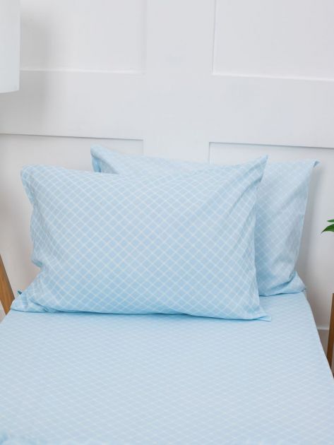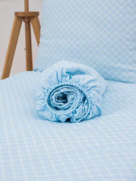 Простыня на резинке 090*200 см, бязь "Комфорт 150 см", борт 25 см (Виши, голубой)