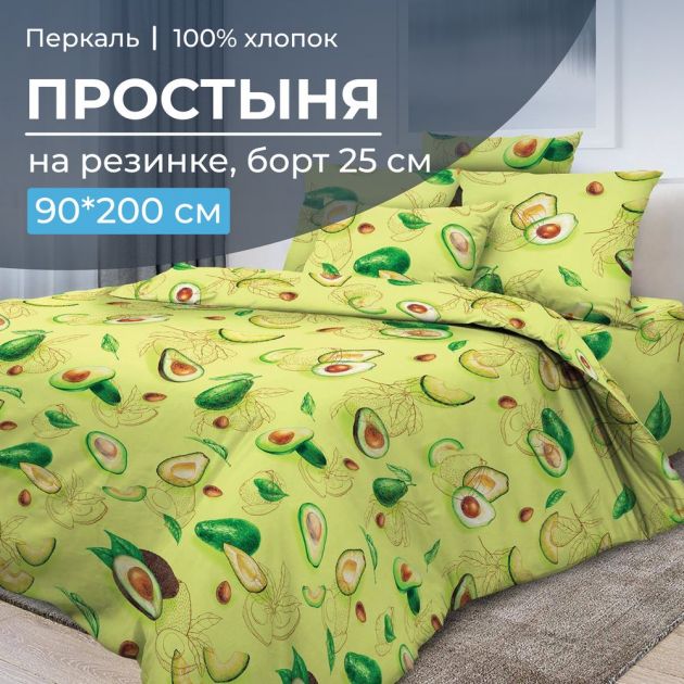 Простыня на резинке 090*200 см, перкаль, борт 25 см (Авокадо)