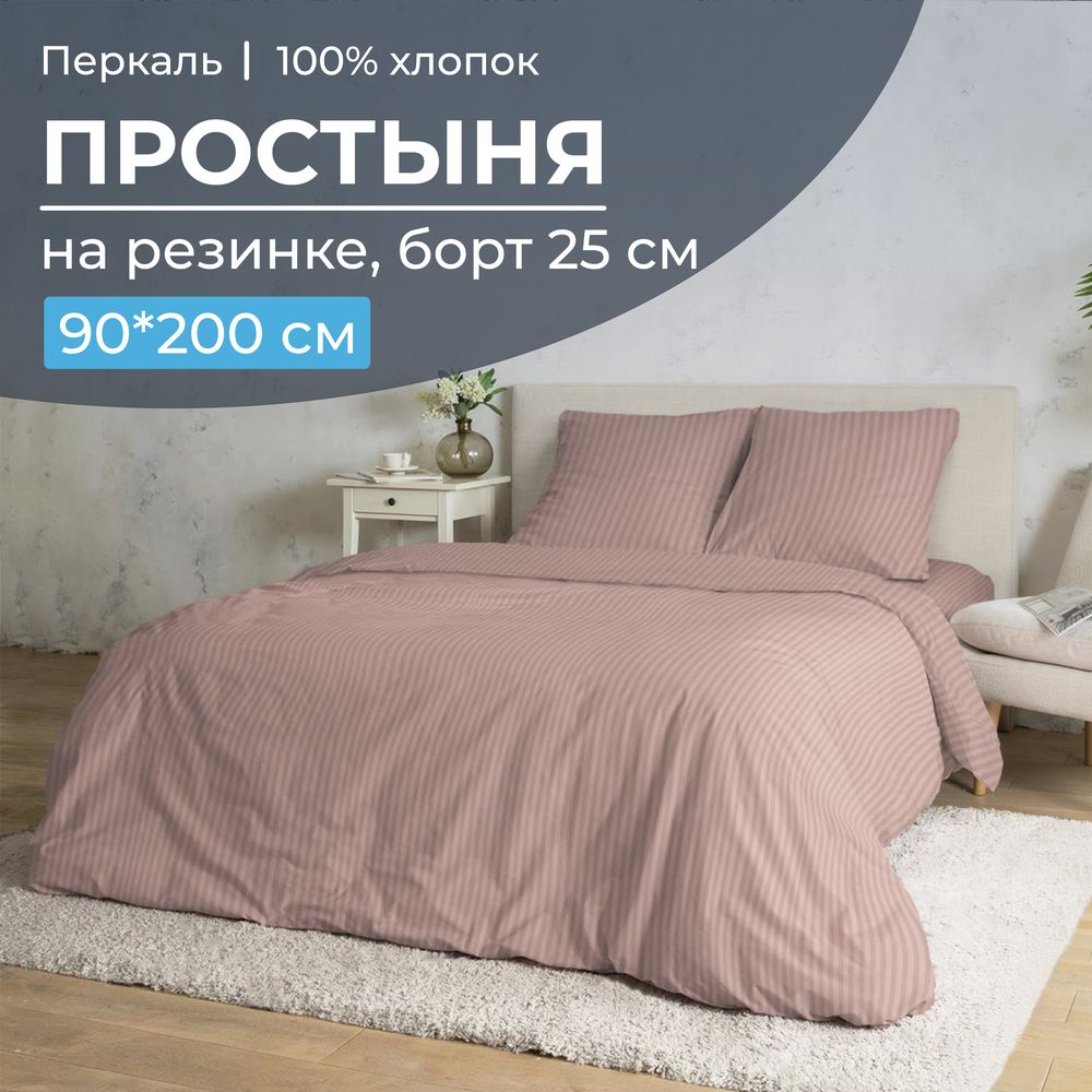 Простыня на резинке 090*200 см, перкаль, борт 25 см (Лунная соната, розовый)