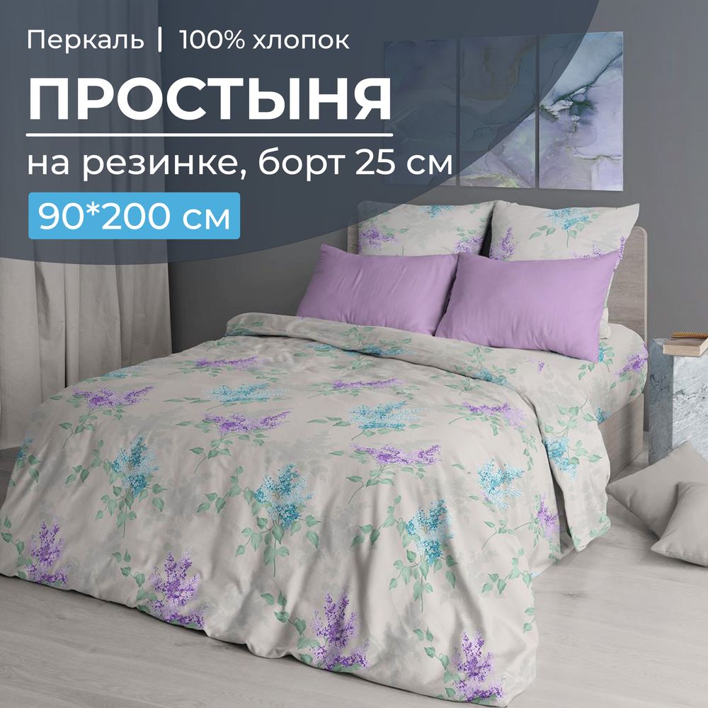 Простыня на резинке 090*200 см, перкаль, борт 25 см (Сирень)