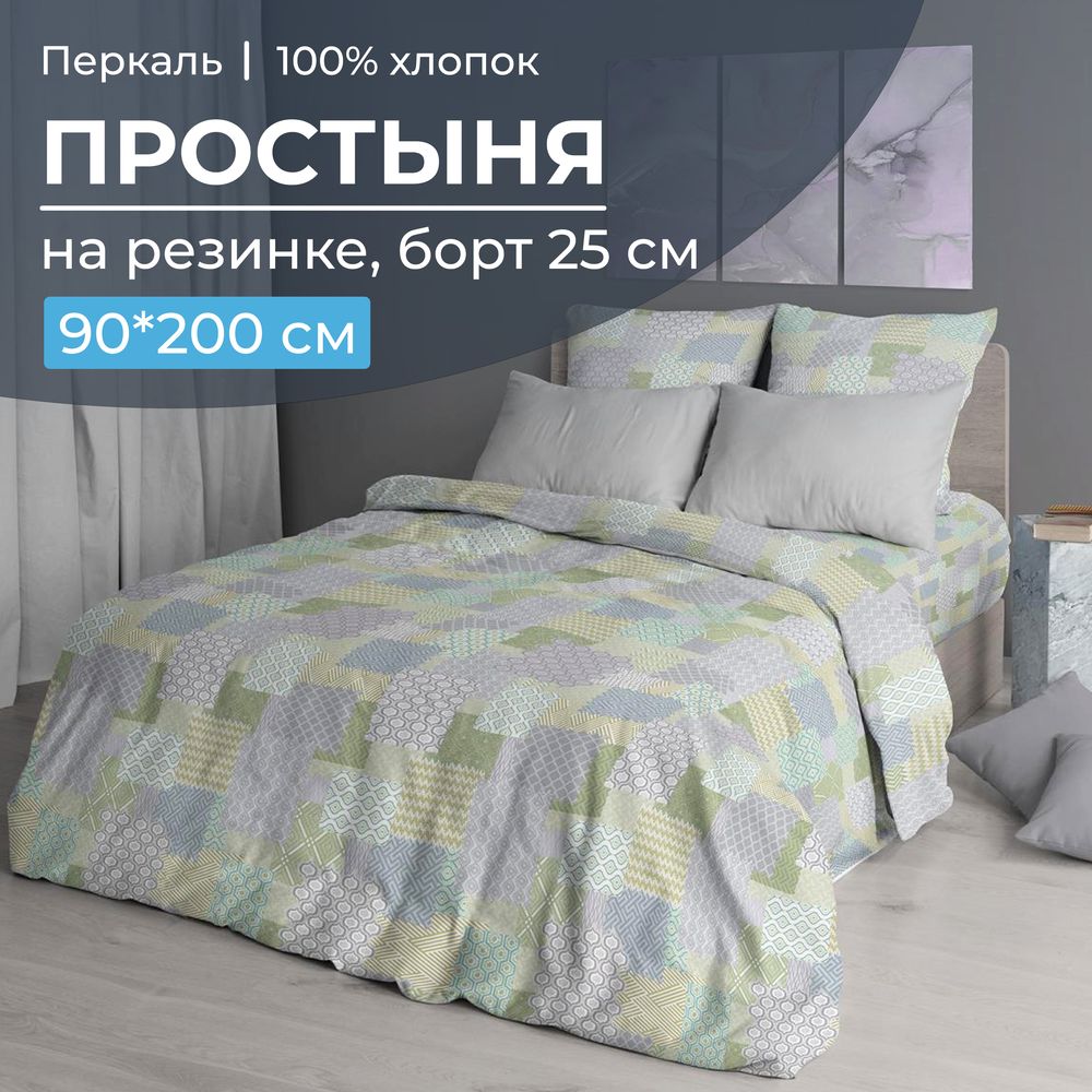 Простыня на резинке 090*200 см, перкаль, борт 25 см (Судока)