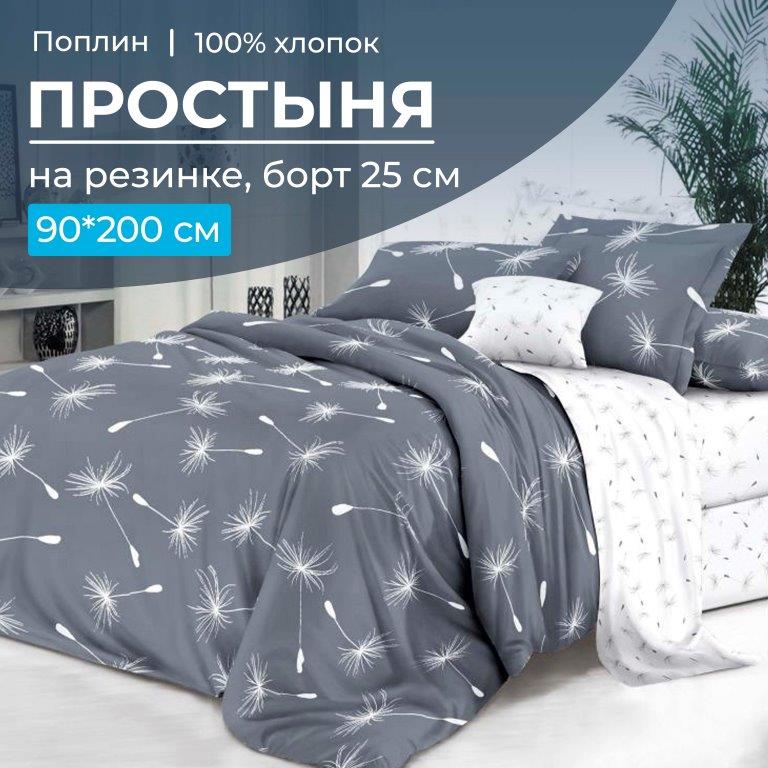 Простыня на резинке 090*200 см, поплин, борт 25 см (Пушинка (компаньон))