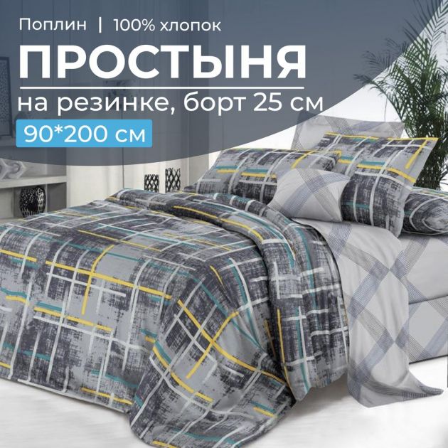 Очень удобная простыня на резинке из поплина плотностью ткани 110 г/м2 на спальное место 90*200 см (ширина и длина матраса). Простыня имеет глубокий борт/спуск 25 см. Резинка проходит по всему периметру (кругу) спального места. Простыня из поплина изготовлена из 100% хлопка, который обладает высоким качеством, что гарантирует Вам долговечность и удобство использования. Хлопковая простыня обеспечит приятную прохладу летом и тепло зимой, благодаря своей дышащей и гипоаллергенной структуре. Кроме того, она легко стирается и сохраняет свою форму и качество даже после многих стирок. Выберите качество и комфорт для своего сна с нашей хлопковой простыней на резинке из поплина!Обратите внимание! Простыни сшиты с учетом усадки ткани (с большим припуском по длине и ширине), поэтому необходима предварительная стирка данного швейного изделия. Группа товара