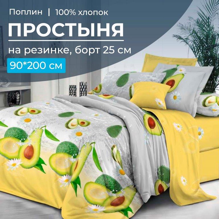 Простыня на резинке 090*200 см, поплин, борт 25 см (Тейсти (компаньон))