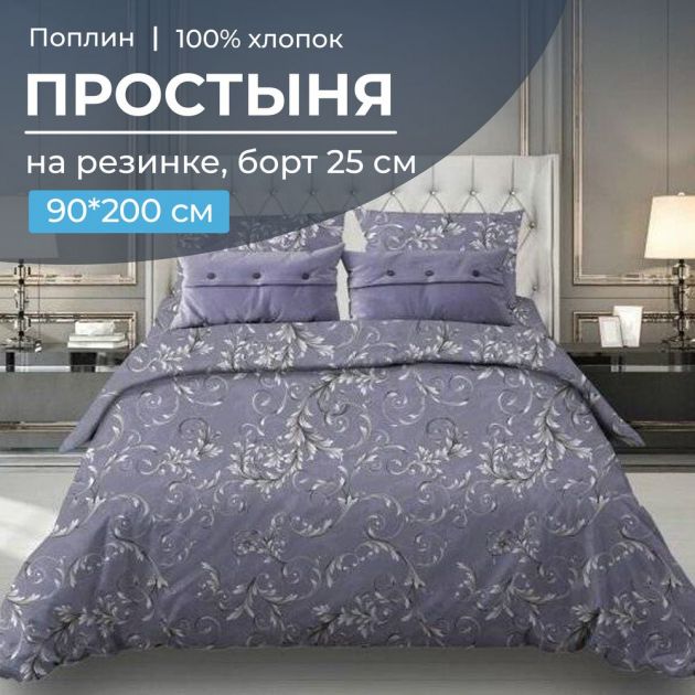 Простыни на резинке из поплина на спальное место 90*200 см, борт глубиной 25 см. Резинка проходит по всему периметру. Состав хлопок 100 %