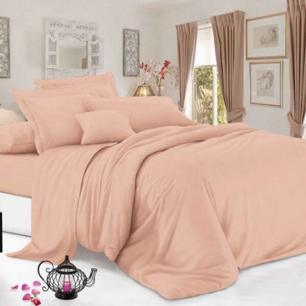 Простыня на резинке 090*200 см, сатин однотонный, борт 25 см (Персик)