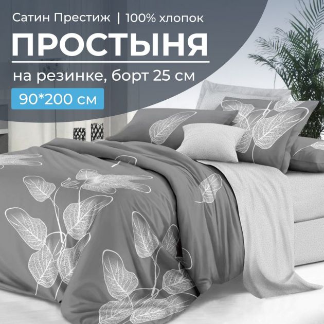 Простыня на резинке 090*200 см, сатин "Престиж", борт 25 см (Шэдоу (компаньон))