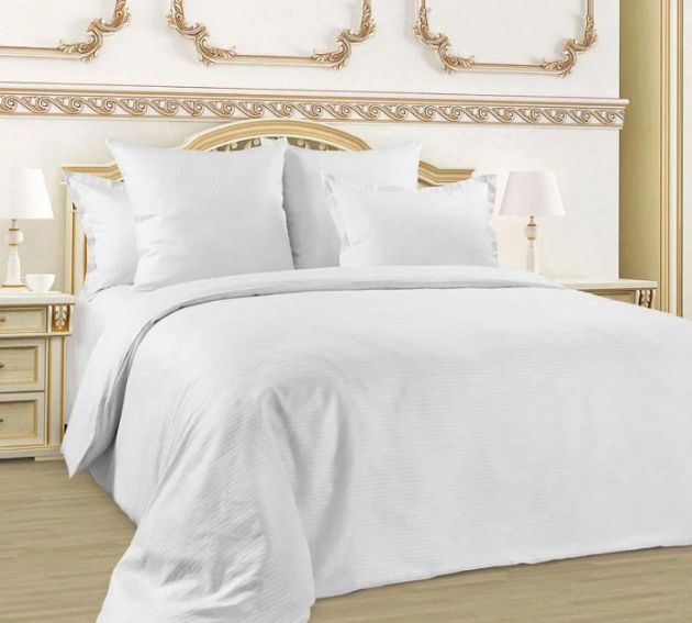 Простыня на резинке размером 90*200 см из элитного сатина-страйпа, имеющего жаккардовый рисунок в виде полос.