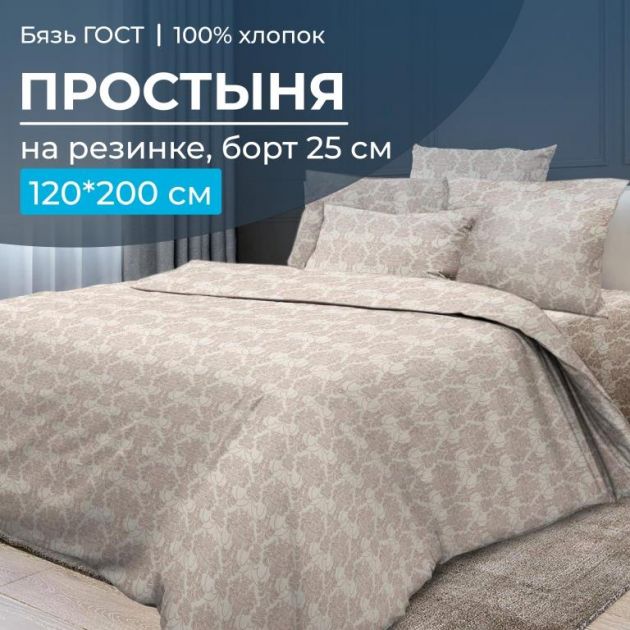 Простыня на резинке 120*200 см, бязь ГОСТ, борт 25 см (Бельведер бискотти)