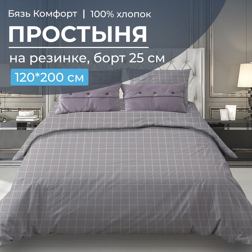 Простыня на резинке 120*200 см, бязь "Комфорт", борт 25 см (Таттерсол, серо-бежевый)