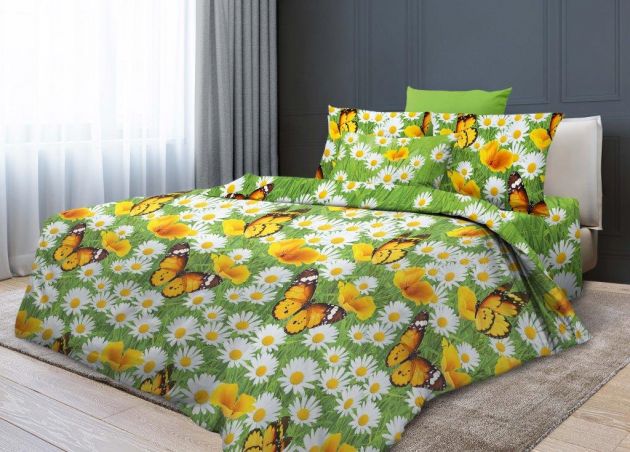 Простыня на резинке 120*200 см, бязь "Люкс", борт 20 см (Ромашковая поляна)