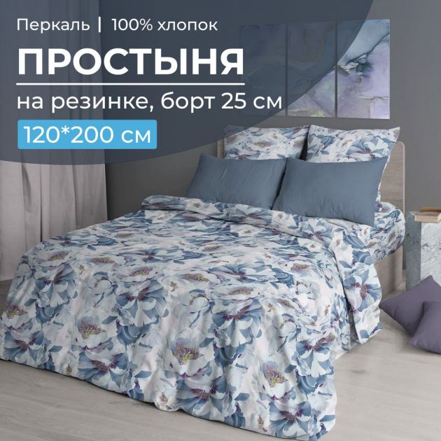 Простыня на резинке 120*200 см, перкаль, борт 25 см (Альба)