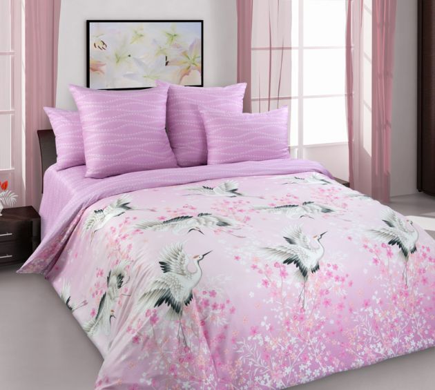 Простыня на резинке 120*200 см, перкаль, борт 25 см (Журавлиный танец (компаньон))