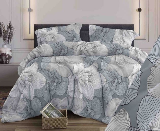 Простыня на резинке 120*200 см, поплин, борт 25 см (Богема, серый)