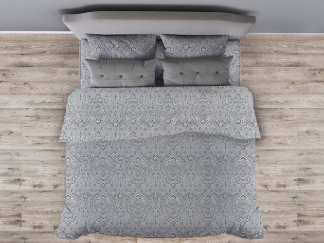 Простыня на резинке 120*200 см, поплин, борт 25 см (Дамаск, серый)