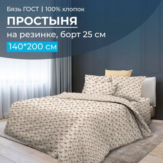 Простыня на резинке 140*200 см, бязь ГОСТ, борт 25 см (Баронесса)