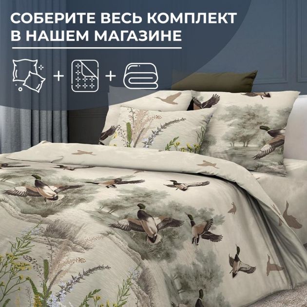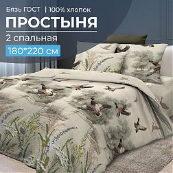 Простыня на резинке 140*200 см, бязь ГОСТ, борт 25 см (Утиная охота)