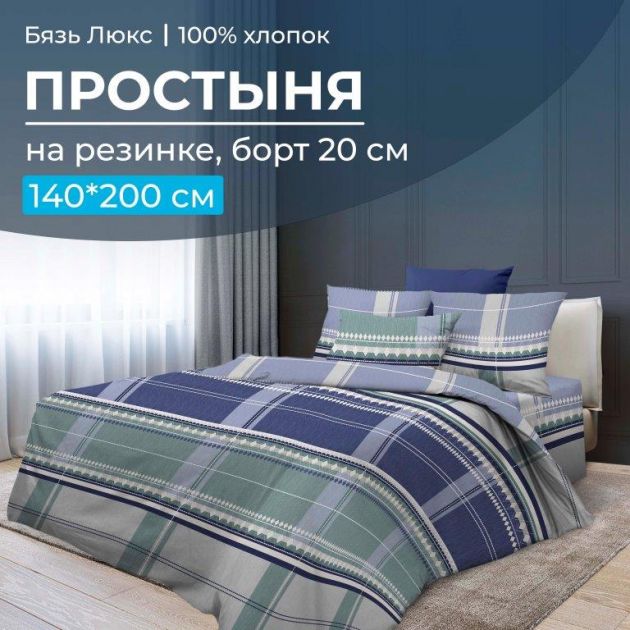 Простыня на резинке 140*200 см, бязь "Люкс", борт 20 см (Kempten)