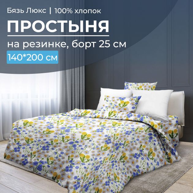 Простыня на резинке из бязи «Люкс» - 100 % хлопка, плотностью ткани 121 г/м2 на спальное место 140*200 см (борт/спуск 25 см). Очень удобная простыня! Резинка проходит по всему периметру (по кругу) спального места, идеально прилегает к матрасу, что позволяют слегка натягивать простыню на матрас, избегая образования складок, не сползает во время сна. Простыня из бязи «Люкс» хорошо пропускает воздух и влагу, не электризуется, мало сминается и легко отстирывается. Постельное белье из такой бязи очень гладкое, тонкое и приятное в использовании, что способствует вашему полноценному отдыху! Обратите внимание! Простыни сшиты с учетом усадки ткани (с большим припуском по длине и ширине), поэтому необходима предварительная стирка данного швейного изделия. Группа товара