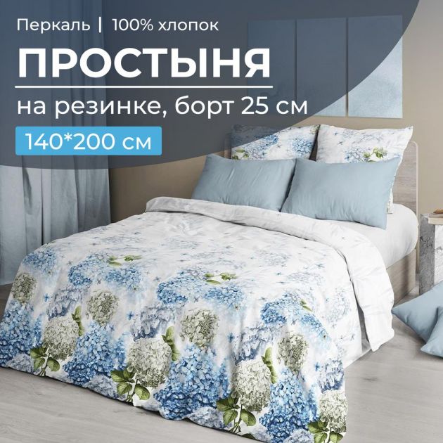 Простыня на резинке 140*200 см, перкаль, борт 25 см (Тиара)