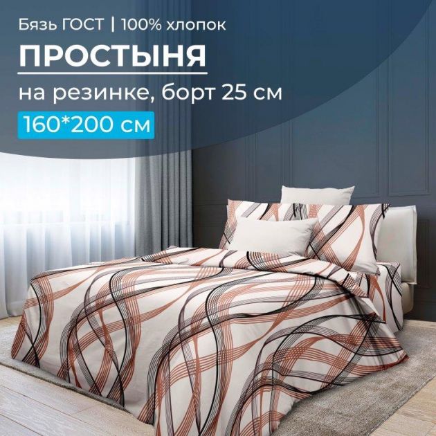 Простыня на резинке 160*200 см, бязь ГОСТ, борт 25 см (Астория)