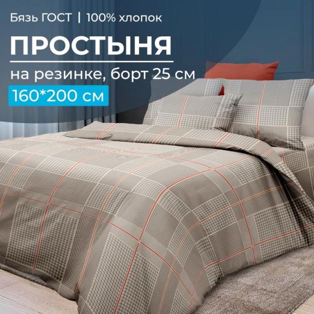 Простыня на резинке 160*200 см, бязь ГОСТ, борт 25 см (Хилтон)