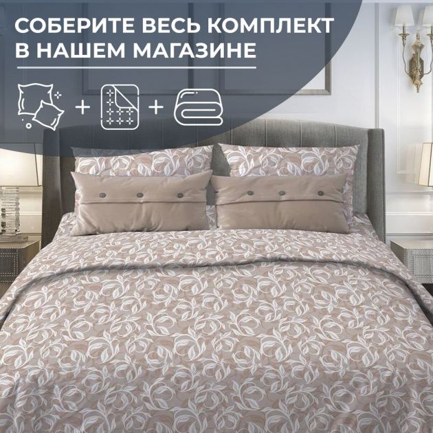 Простыня на резинке 160*200 см, бязь "Комфорт", борт 25 см (Вьюнок, бежевый)
