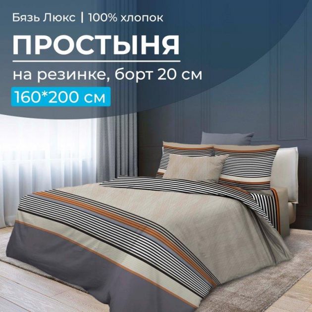 Простыня на резинке 160*200 см, бязь "Люкс", борт 20 см (Simple)