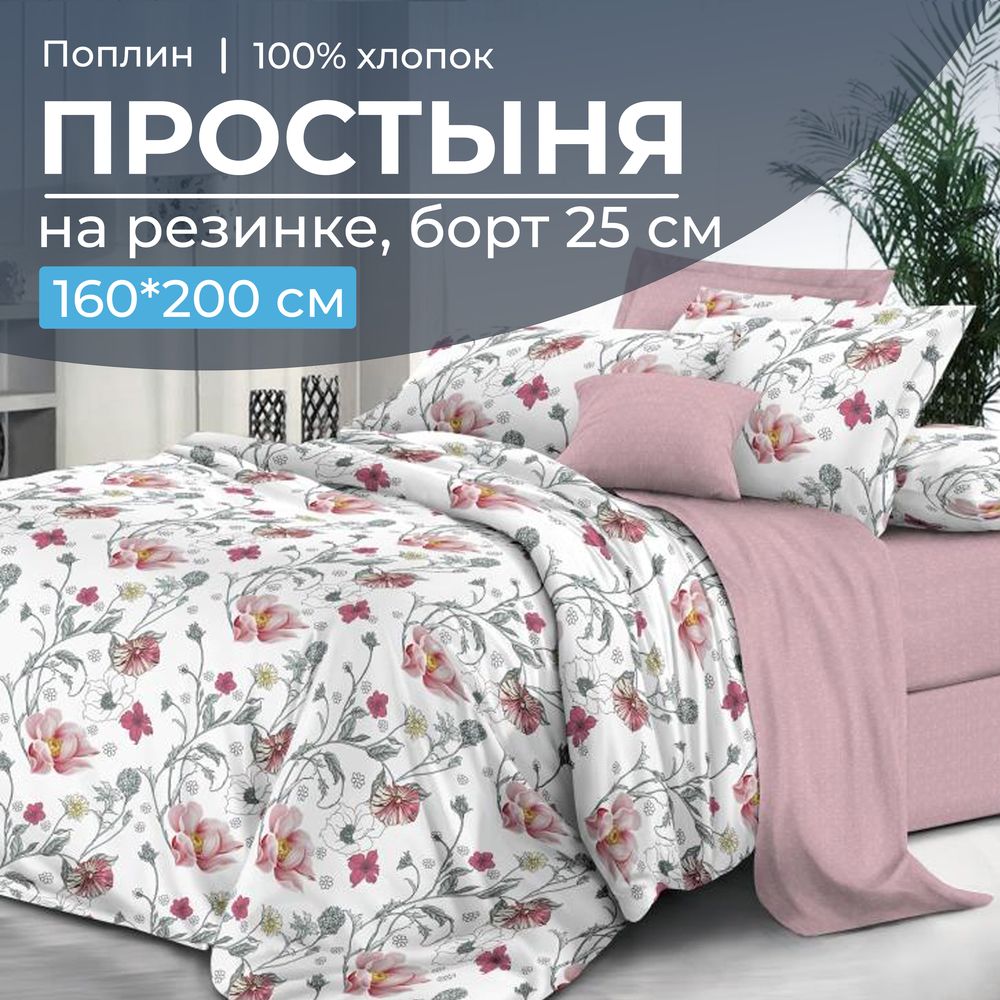 Простыня на резинке 160*200 см, поплин, борт 25 см (Милица (компаньон))