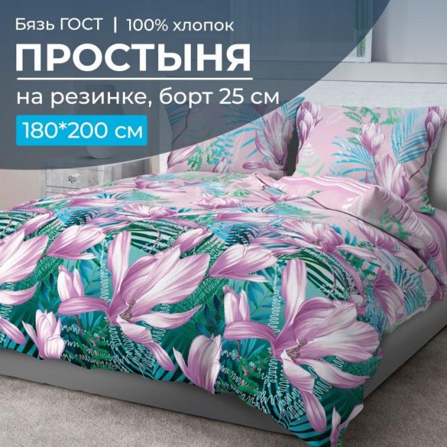 Простыня на резинке 180*200 см, бязь ГОСТ, борт 25 см (Летиция)