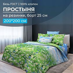Простыня на резинке 180*200 см, бязь ГОСТ, борт 25 см (Русское поле 3 D)