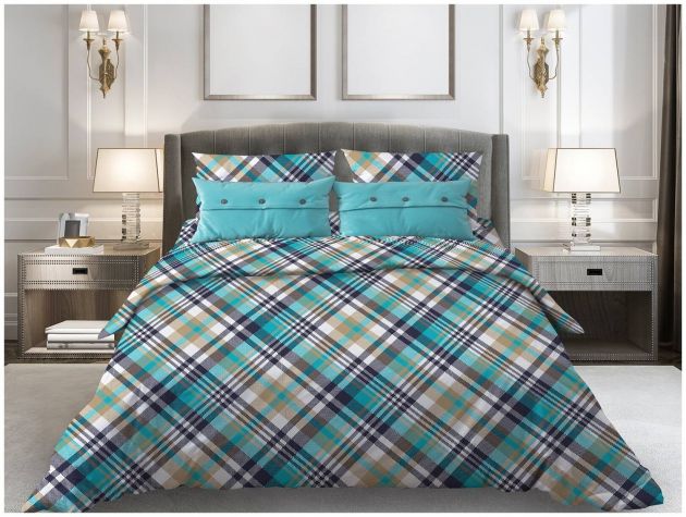 Простыня на резинке 180*200 см, бязь "Комфорт", борт 20 см (Лондон, бирюзовый)