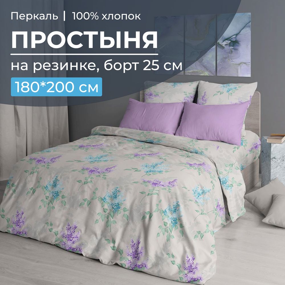Простыня на резинке 180*200 см, перкаль, борт 25 см (Сирень)
