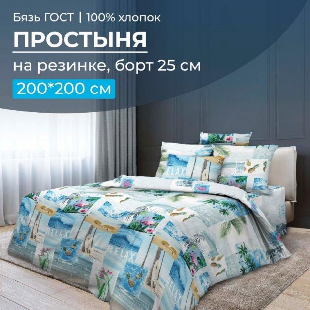 Простыня на резинке 200*200 см, бязь ГОСТ, борт 25 см (Парадайз)