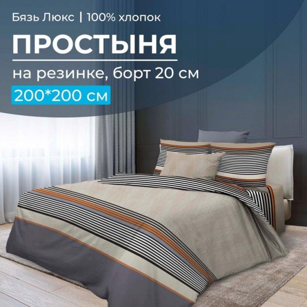Простыня на резинке 200*200 см, бязь "Люкс", борт 20 см (Simple)
