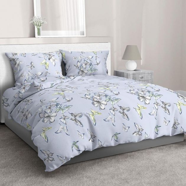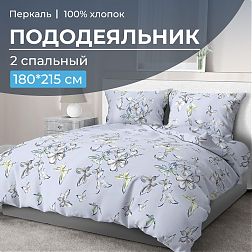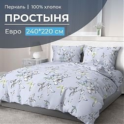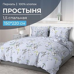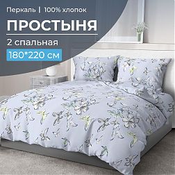 Простыня на резинке 200*200 см, перкаль, борт 25 см (Астерия, сине-голубой)