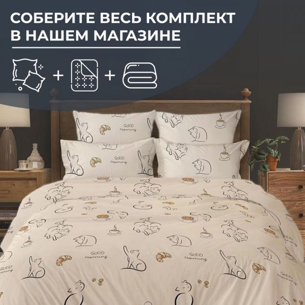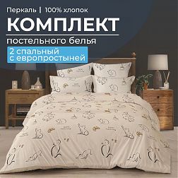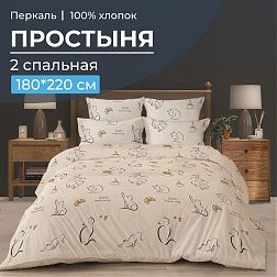 Простыня на резинке 200*200 см, перкаль, борт 25 см (Котолатте)