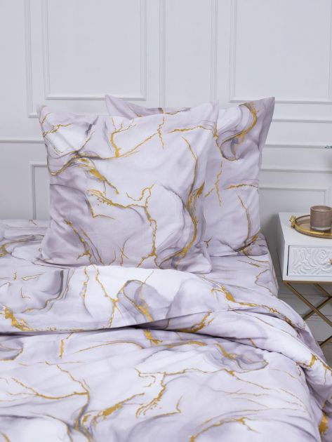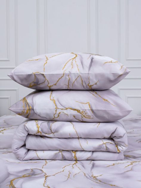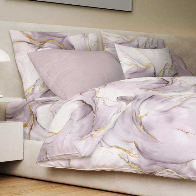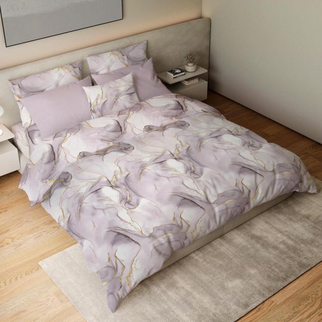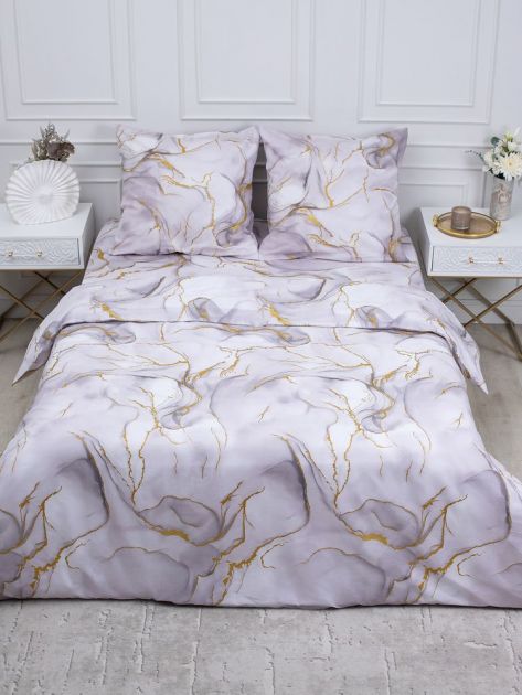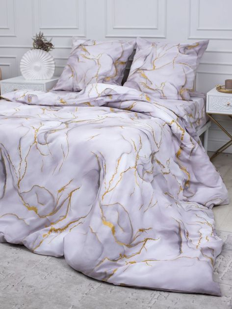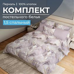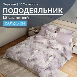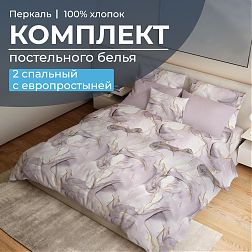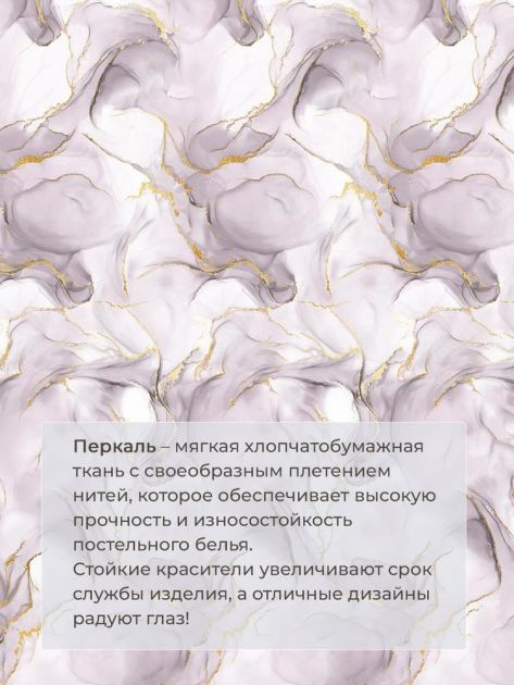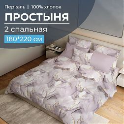 Простыня на резинке 200*200 см, перкаль, борт 25 см (Мраморный узор, сиреневый)