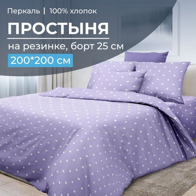 Простыня на резинке 200*200 см, перкаль, борт 25 см (Вивьен лилак)