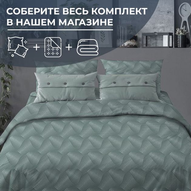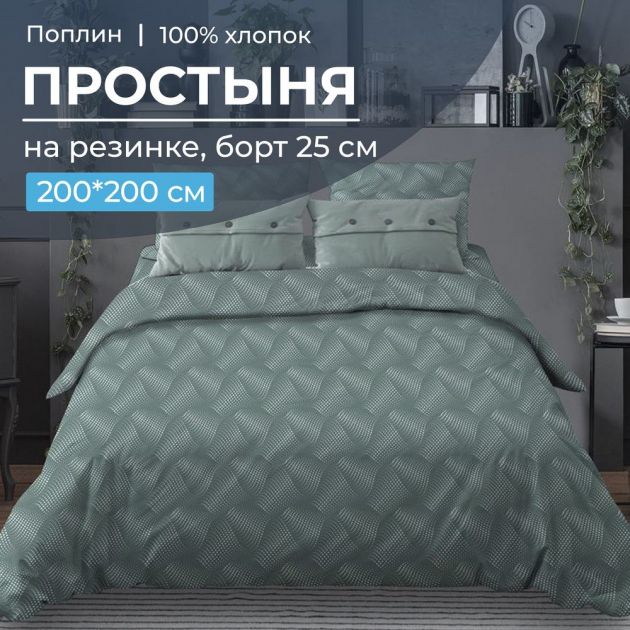 Простыня на резинке 200*200 см, поплин, борт 25 см (Иллюзия, зеленый)