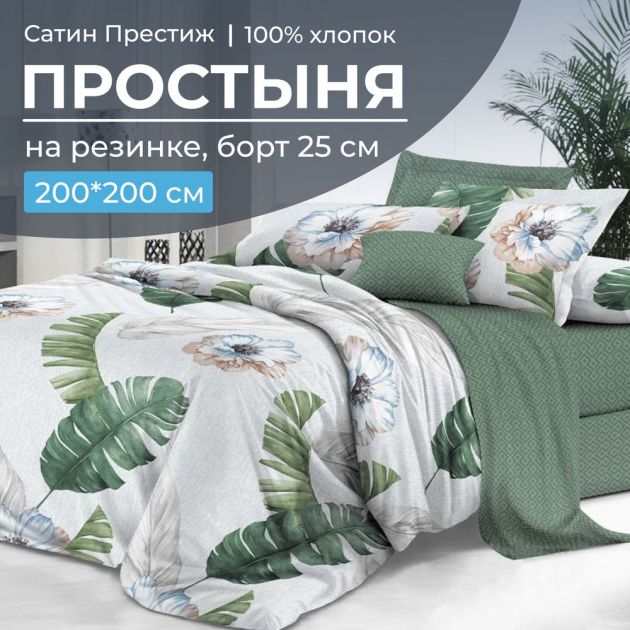 Простыня на резинке 200*200 см, сатин "Престиж", борт 25 см (Фаина (компаньон))