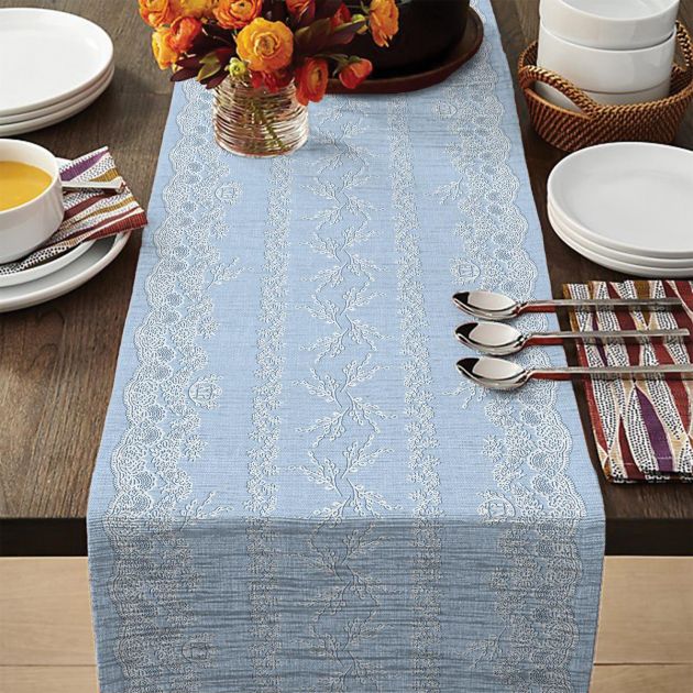 Дорожка для сервировки 50*150 см, хлопок 100% (Верба, голубой)