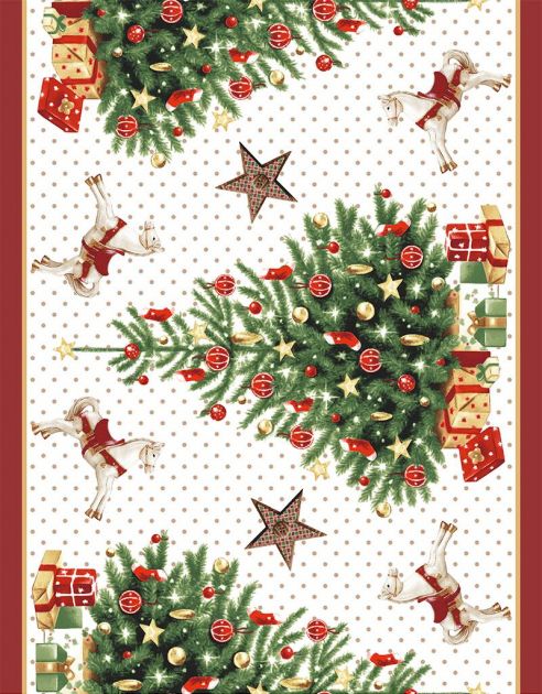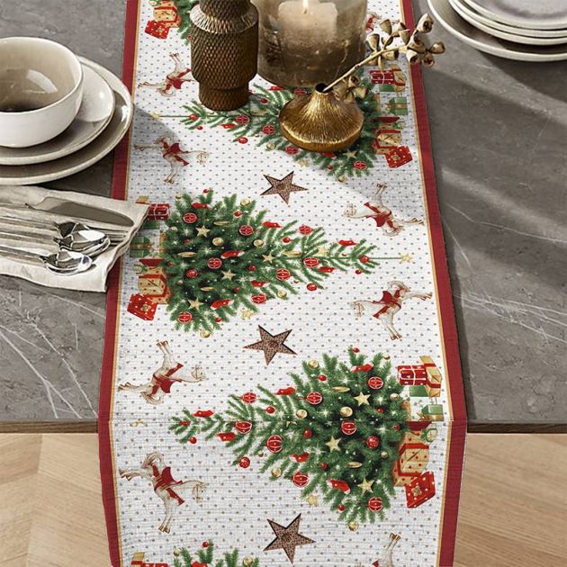 Для сервировки Новогоднего стола и создания праздничной атмосферы отлично подойдут дорожки из плотной хлопчатобумажной ткани премиального качества. Размер дорожки 50*150 см. Плотность 228 г/м2. Особенно хорошо смотрятся дорожки на фоне однотонных скатертей.