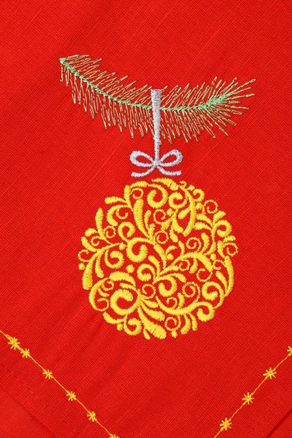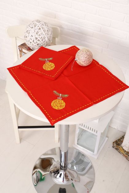 Комплект из 2 льняных салфеток с вышивкой, лен 100 % (Рождественское чудо, красный)