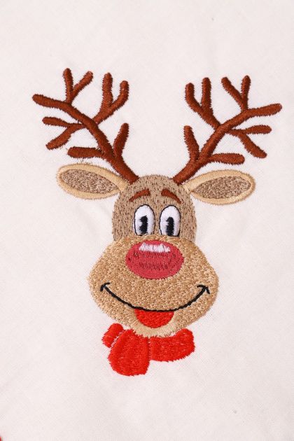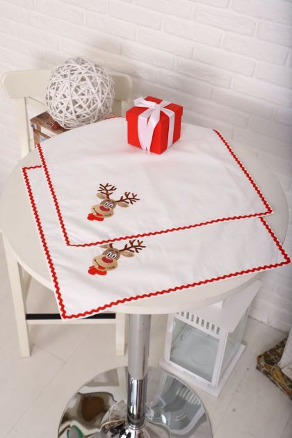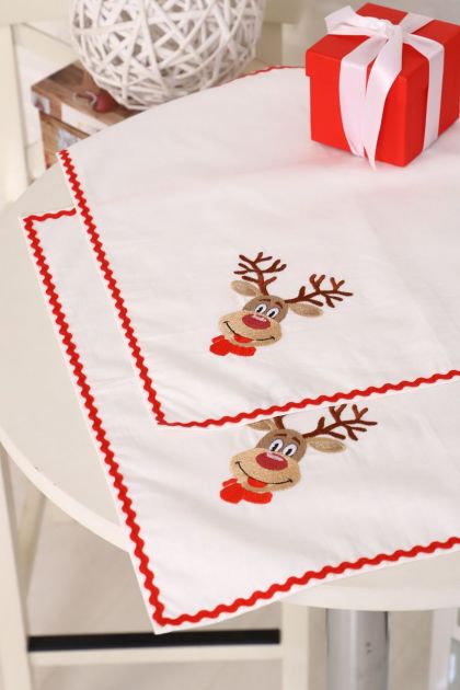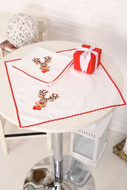 Комплект льняных салфеток с вышивкой, 2 шт., лен 100 % (Олень Рудольф, белый)