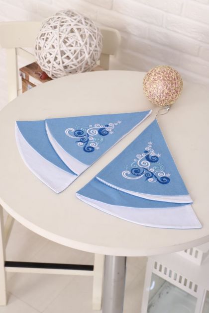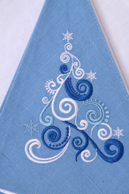 Салфетка сувенирная полукруглая с вышивкой, лен 100 % (Елочка, голубой)