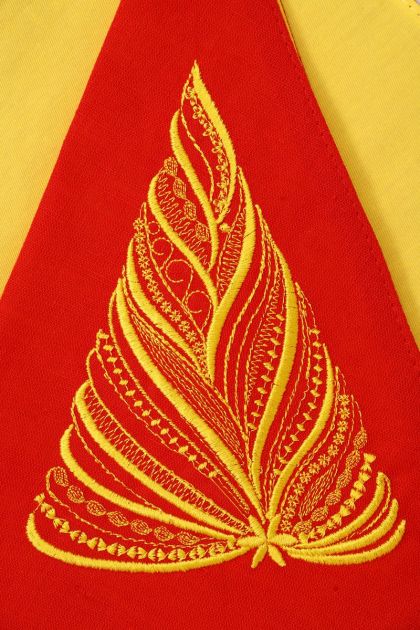 Салфетка сувенирная полукруглая с вышивкой, лен 100 % (Елочка, красный)
